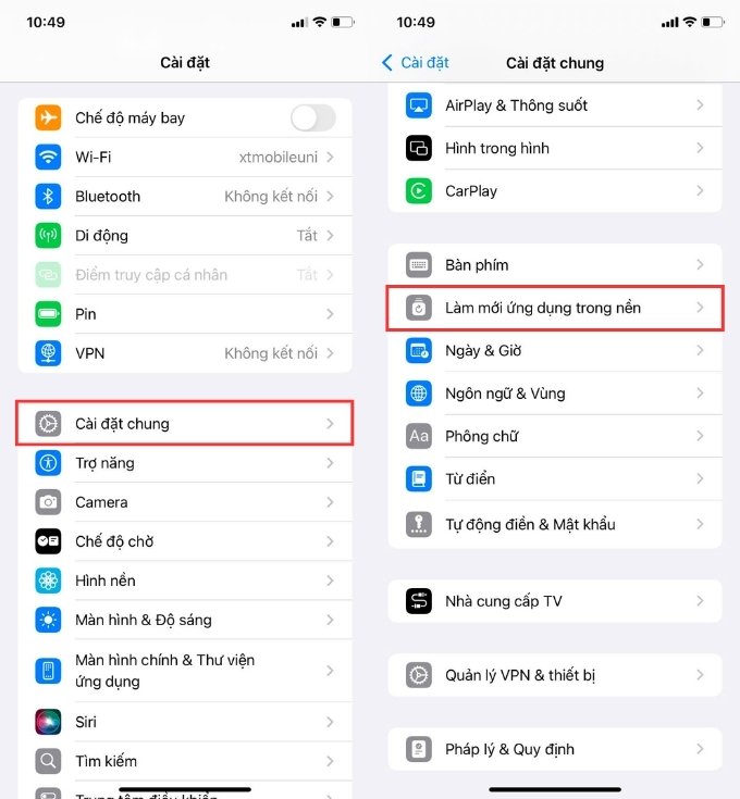 Bước 1: Mở ứng dụng Cài đặt trên iPhone > chọn Cài đặt chung > nhấn vào mục Làm mới ứng dụng trong nền.