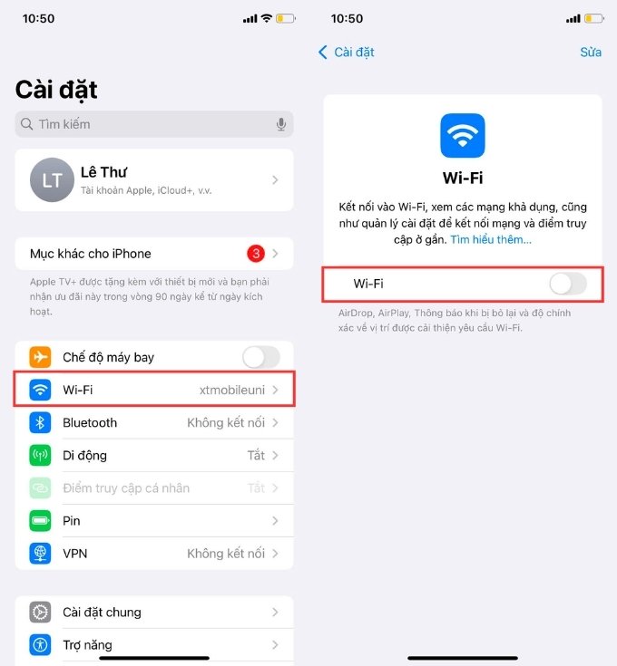 Bước 3: Quay lại Cài đặt > chọn WiFi > tắt kết nối WiFi