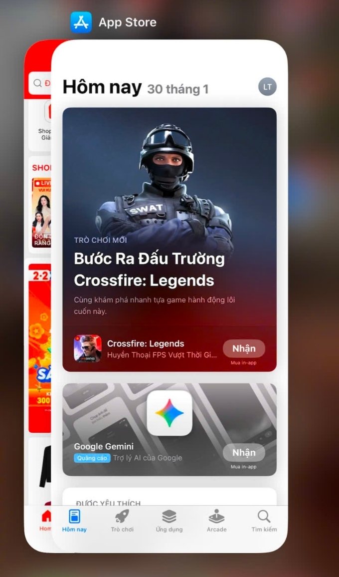 Sau khi giao diện đa nhiệm xuất hiện, bạn vuốt sang trái hoặc phải để tìm ứng dụng muốn tắt. Khi đã chọn được ứng dụng cần đóng, hãy vuốt thẻ ứng dụng đó lên phía trên để kết thúc quá trình chạy ngầm.
