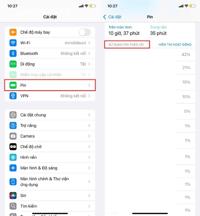Trước khi đóng ứng dụng chạy ngầm, bạn nên kiểm tra xem đâu là những app đang tiêu hao nhiều pin nhất. Điều này giúp bạn xác định chính xác “thủ phạm”, từ đó tối ưu pin hiệu quả hơn.