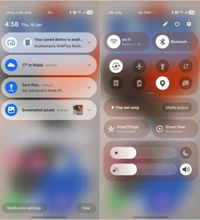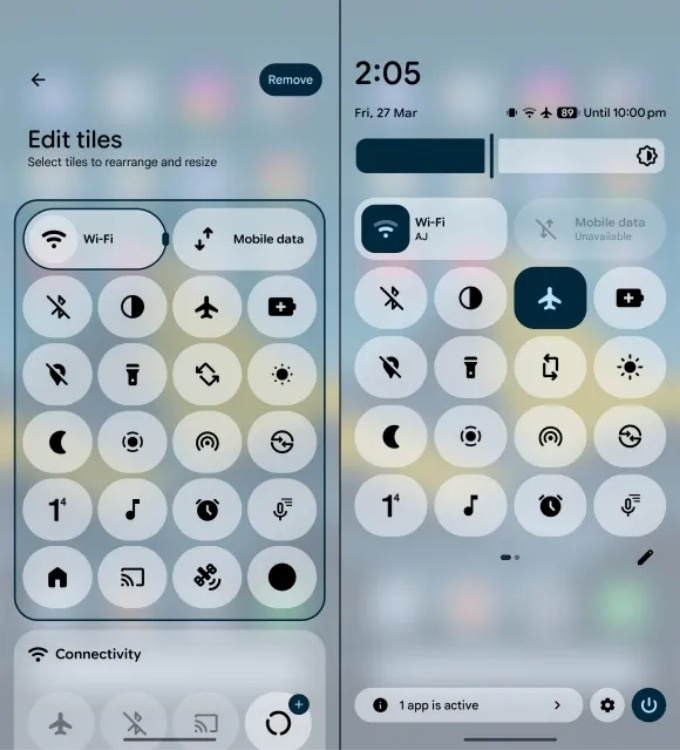 Lấy cảm hứng từ giao diện của một số hãng điện thoại Android tùy biến như OnePlus, Android 17 thử nghiệm việc tách riêng trang thông báo và trang cài đặt nhanh. Bạn có thể vuốt từ phía bên trái màn hình để xem thông báo và vuốt từ phía bên phải để mở bảng điều khiển. Cách bố trí này giúp không gian hiển thị rộng rãi hơn, cho phép người dùng tương tác với nhiều phím tắt cài đặt nhanh hơn mà không bị che khuất bởi các thông báo dày đặc.