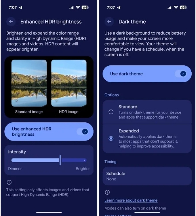 Mở rộng Chế độ tối và Tăng cường độ sáng HDR