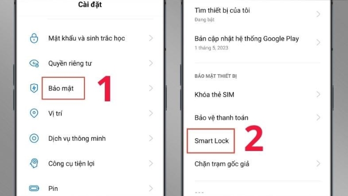 Bước 1: Truy cập Cài đặt > Chọn mục Mật khẩu và bảo mật. Trong phần các phương thức khóa/ mở khóa, tìm đến Bảo mật và chọn Smart Lock.