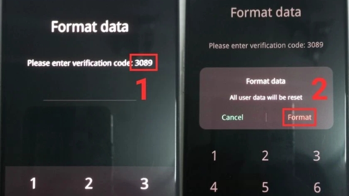 Bước 4: Nhập mã xác nhận hiển thị trên màn hình. Khi các tùy chọn xuất hiện, chọn Format và chờ trong vài phút để thiết bị tiến hành đặt lại.