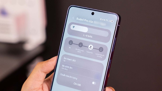 Không gian âm thanh (soundstage) của Galaxy Buds 4 Pro cũng được mở rộng hơn so với thế hệ trước. Khi kích hoạt tính năng âm thanh 360 Audio, người dùng có thể cảm nhận được độ rộng và chiều sâu của âm trường rõ ràng hơn, mang lại trải nghiệm gần với việc nghe loa ngoài. Khả năng tách lớp nhạc cụ cũng được cải thiện, giúp từng chi tiết trong bản nhạc được thể hiện rõ ràng, không bị chồng lấn.