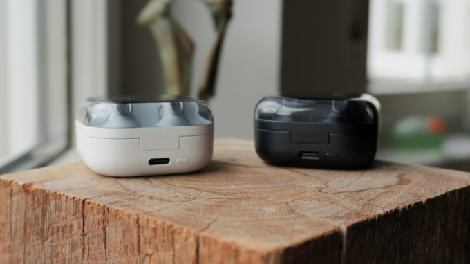 Hộp sạc cũng được làm mới với thiết kế vuông đứng thay vì dạng chữ nhật nằm ngang như trước. Nắp hộp sử dụng chất liệu nhựa trong suốt, cho phép quan sát tai nghe bên trong mà không cần mở, tạo cảm giác như một món phụ kiện công nghệ mang tính trưng bày cao. Phần thân hộp được phủ lớp nhám mờ giúp hạn chế bám vân tay, trong khi đáy hộp được làm phẳng để tăng độ ổn định khi đặt trên bề mặt.