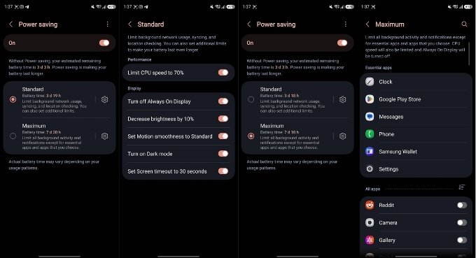 Theo nhiều người dùng Samsung, chế độ này có thể giúp cải thiện khoảng 10 đến 15% thời lượng pin. Đây là mức tăng khá rõ trong quá trình sử dụng hàng ngày.