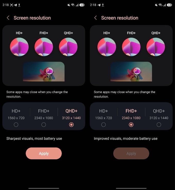 Khi chuyển xuống FHD+, bạn gần như không nhận ra sự khác biệt trong các tác vụ thông thường. Tuy nhiên, mức tiêu thụ pin sẽ giảm đi đáng kể.
