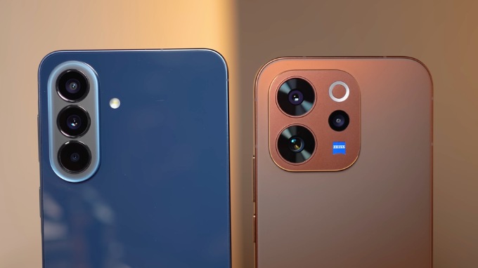 Ngược lại, Vivo V70 Elite lại mang đến một vẻ đẹp đậm chất công nghệ và có phần lộng lẫy hơn. Máy sử dụng khung nhôm chuẩn hàng không vũ trụ, đi kèm các tùy chọn mặt lưng kính hoặc nhựa gia cố sợi thủy tinh. Điểm nhấn lớn nhất là cụm camera vuông bo tròn được tinh chỉnh bởi ZEISS cùng vòng đèn Aura Light đặc trưng.